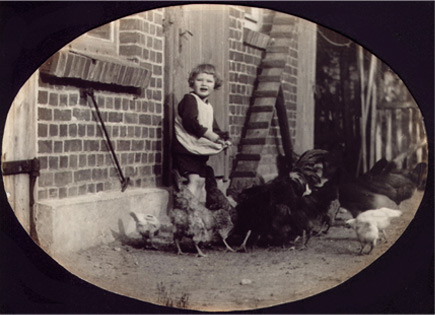 Juni 1927, Klaus Möller als Kleinkind beim Hühnerfüttern auf dem