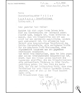 Antwortbrief von Dr. Morell an Erich Möller, der die Hoffnung, dass sein